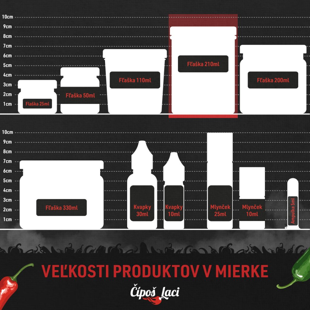 Zmes extrémne pálivých chilli papričiek zaváraná v sladko-kyslom náleve. Plnený zmesou z 50 druhov chilli papričiek 200ml.