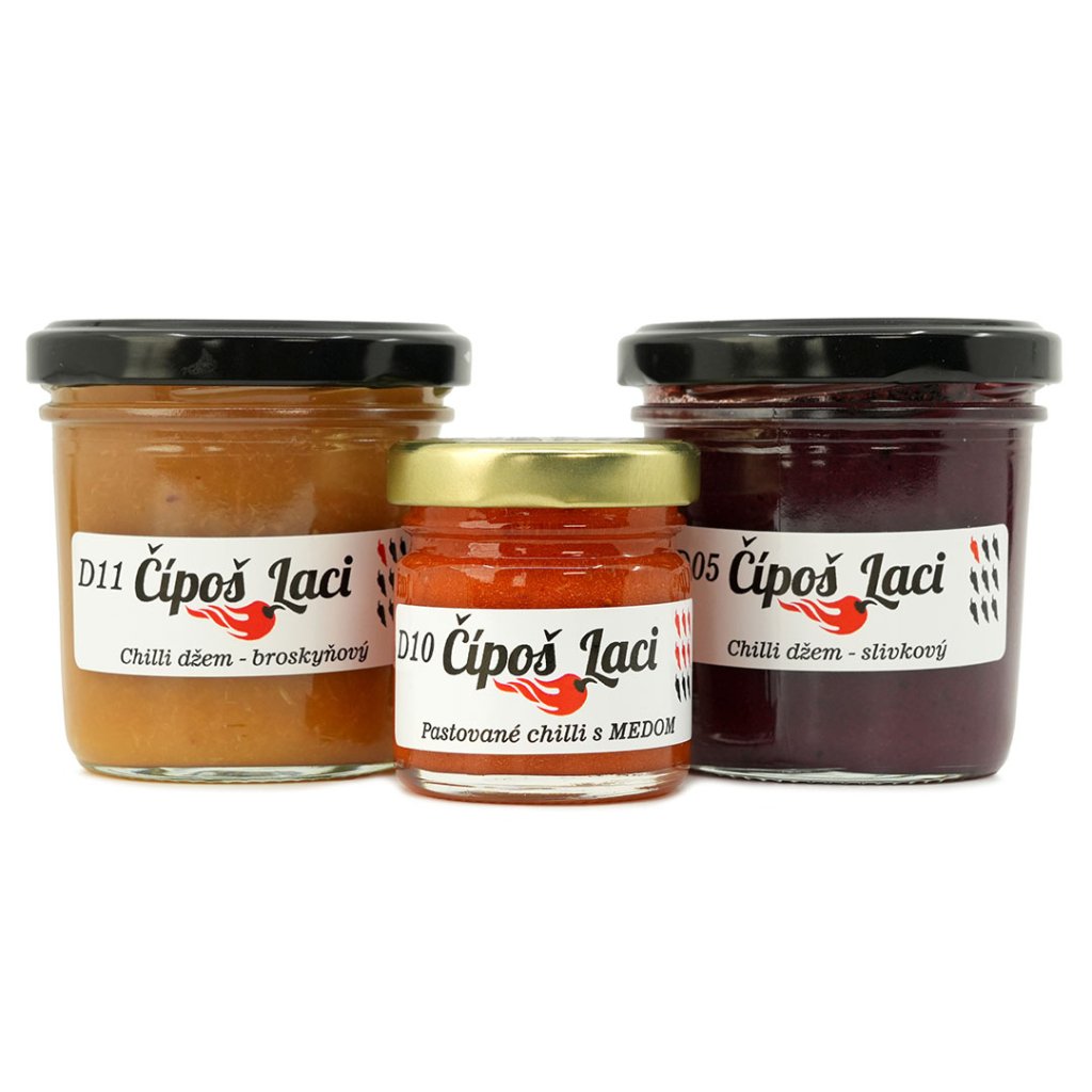 Cenovo zvýhodnená darčeková kombinácia - obsahuje 3 druhy sladkých produktov s chilli.