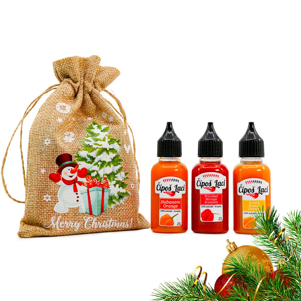 Vianočný darčekový chilli balíček – TRIO KVAPKY (jutový)